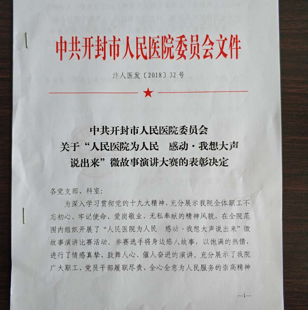 中共開封市人民醫(yī)院委員會關(guān)于“人民醫(yī)院為人民 感動·我想大聲說出來”微故事演講大賽的表彰決定
