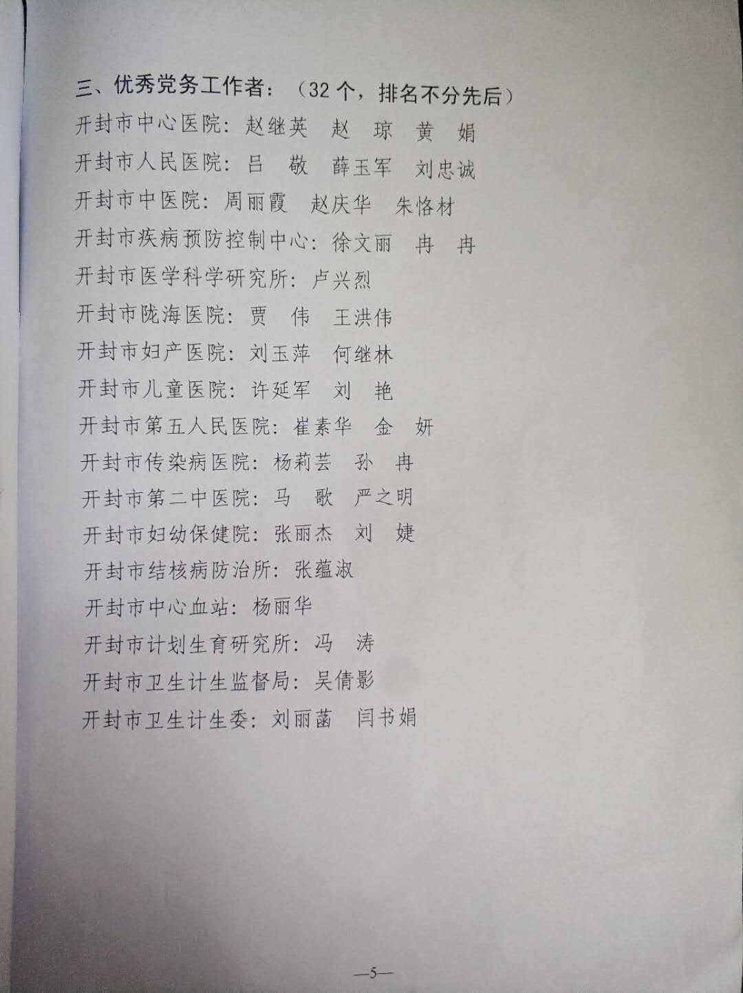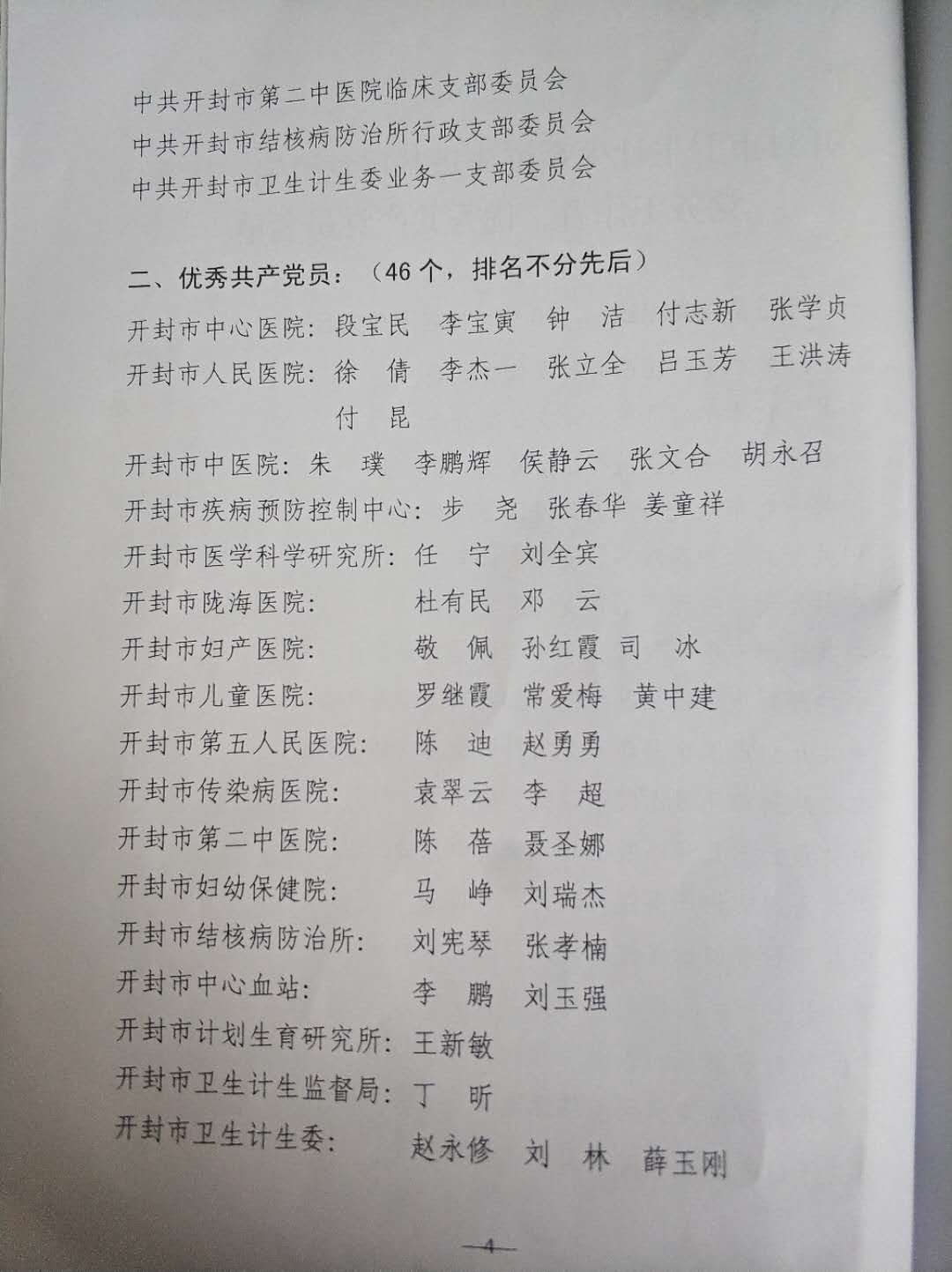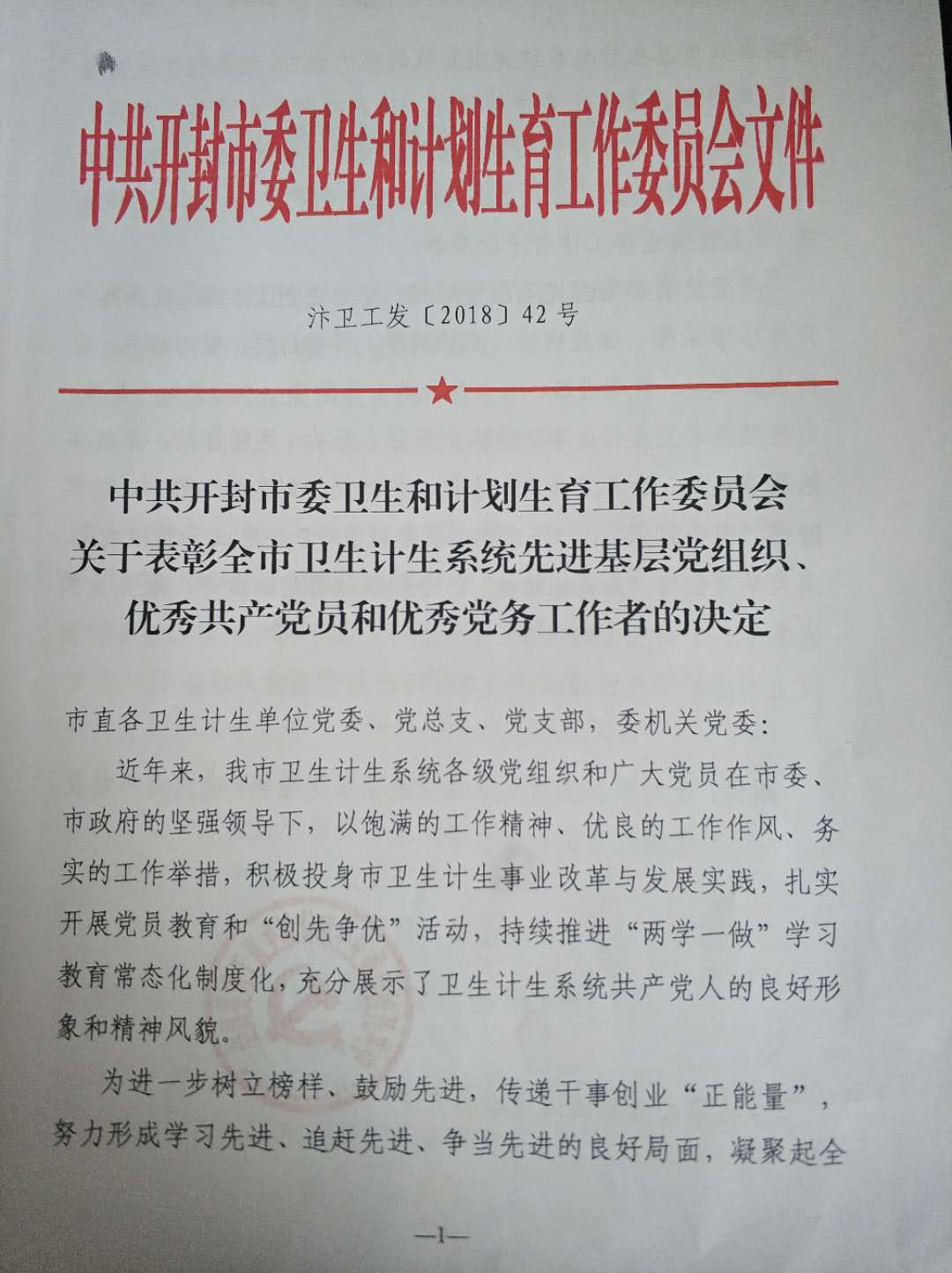 中共開封市委衛(wèi)生和計劃生育工作委員會關(guān)于表彰全市衛(wèi)生計生系統(tǒng)先進基層黨組織、優(yōu)秀共產(chǎn)黨員和優(yōu)秀黨務工作者的決定